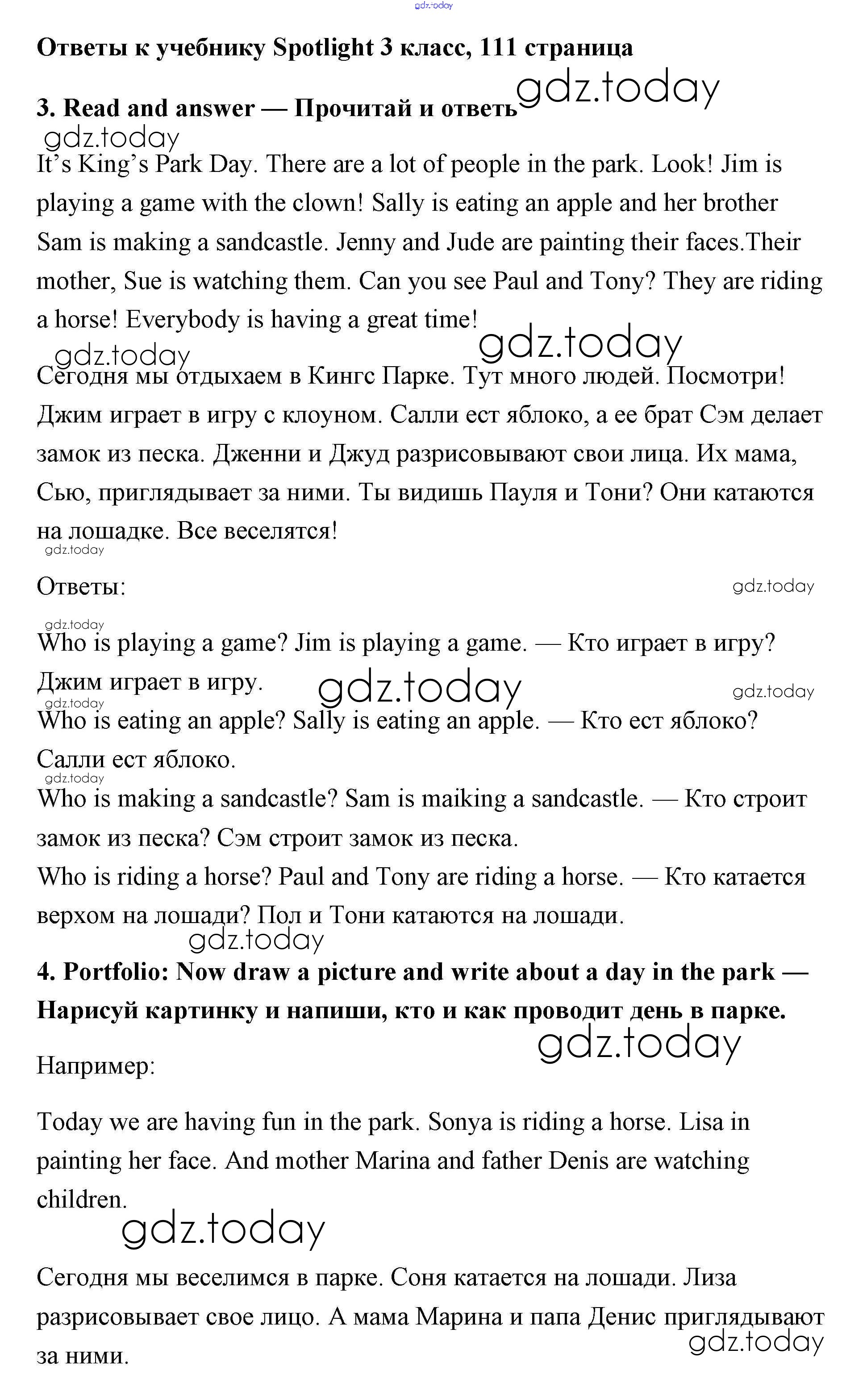 Ответы к Страницы (решение) 111 Учебнику по Английскому языку для 3 класса Быкова, Эванс Просвещение Spotlight 2015