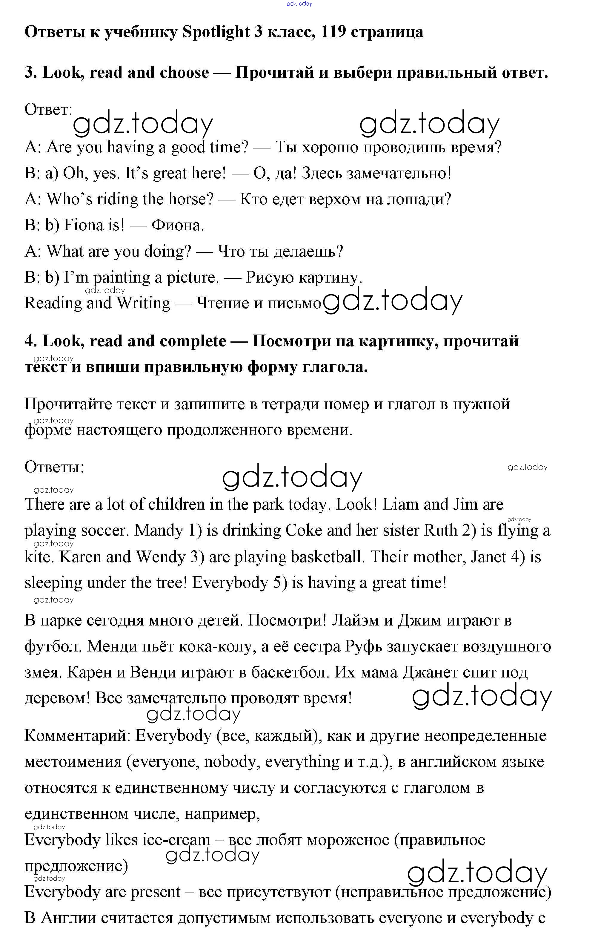 Ответы к Страницы (решение) 119 Учебнику по Английскому языку для 3 класса Быкова, Эванс Просвещение Spotlight 2015