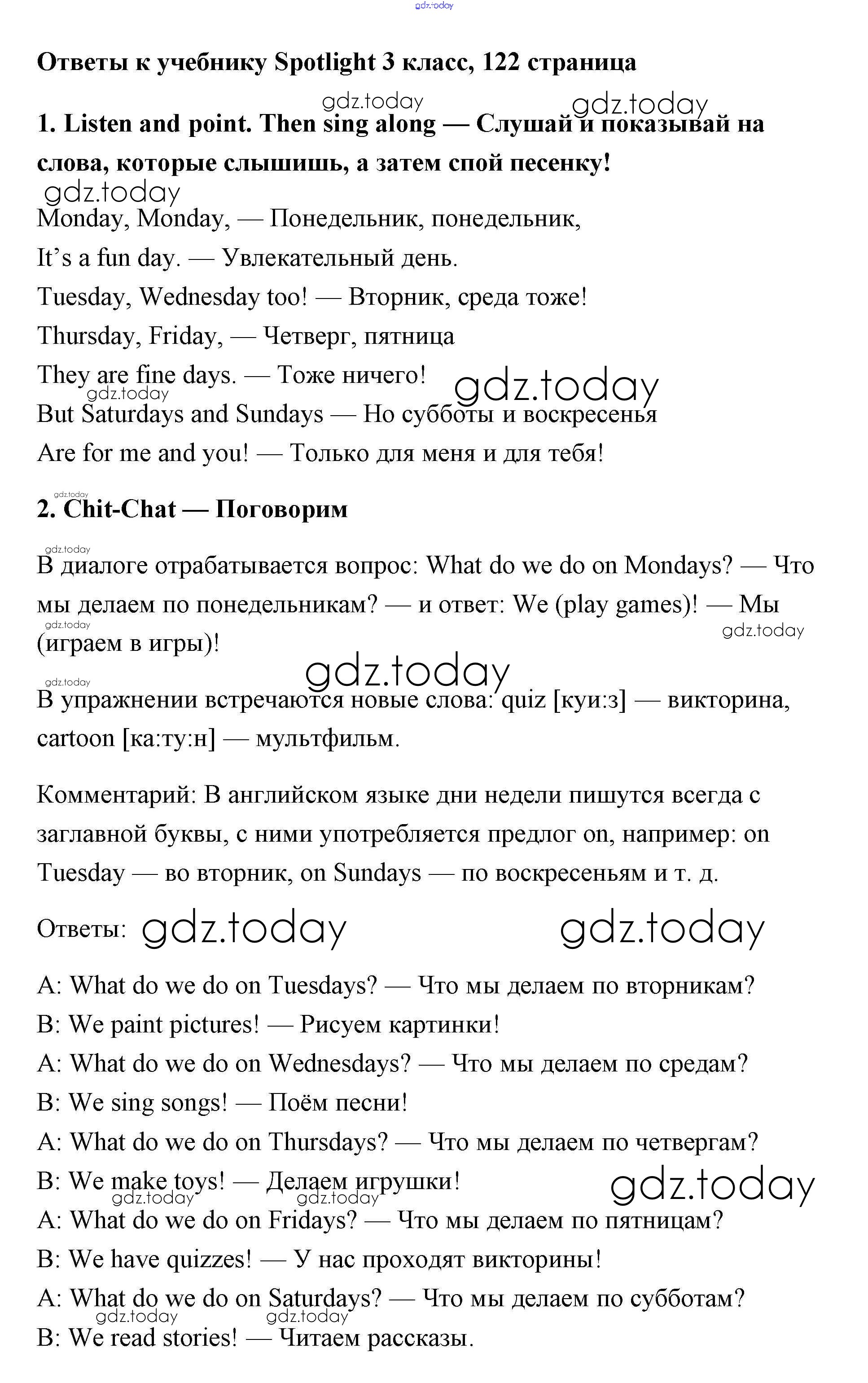 Ответы к Страницы (решение) 122 Учебнику по Английскому языку для 3 класса Быкова, Эванс Просвещение Spotlight 2015