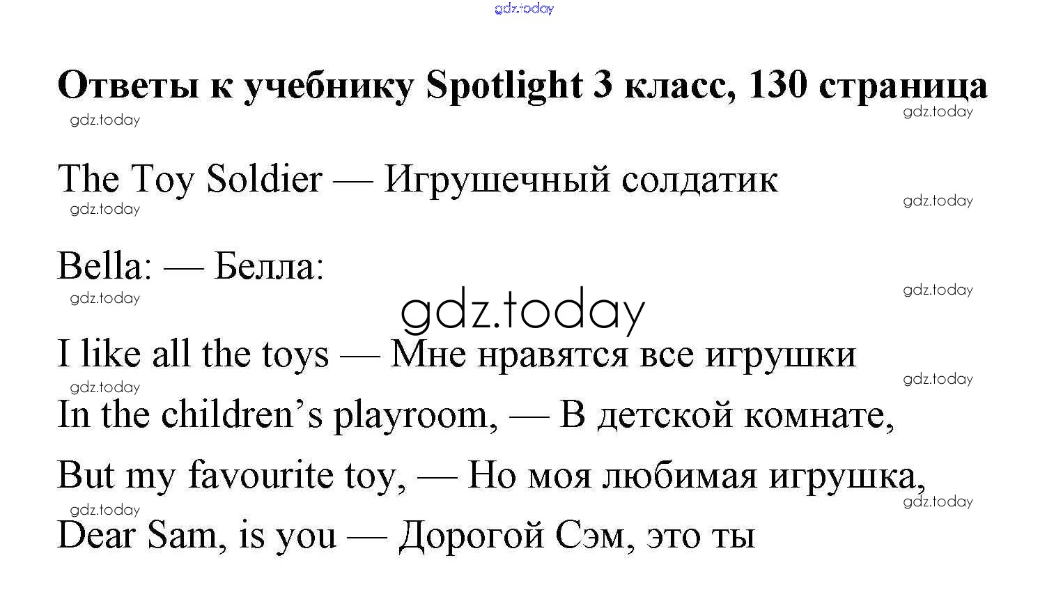 На страницах сайта gdz.today вы найдете учебный и вспомогательный материал, направленный на улучшения знаний школьной программы. ГДЗ - онлайн мир знаний Страницы (решение) 130 Учебнику по Английскому языку для 3 класса Быкова, Эванс Просвещение Spotlight 2015