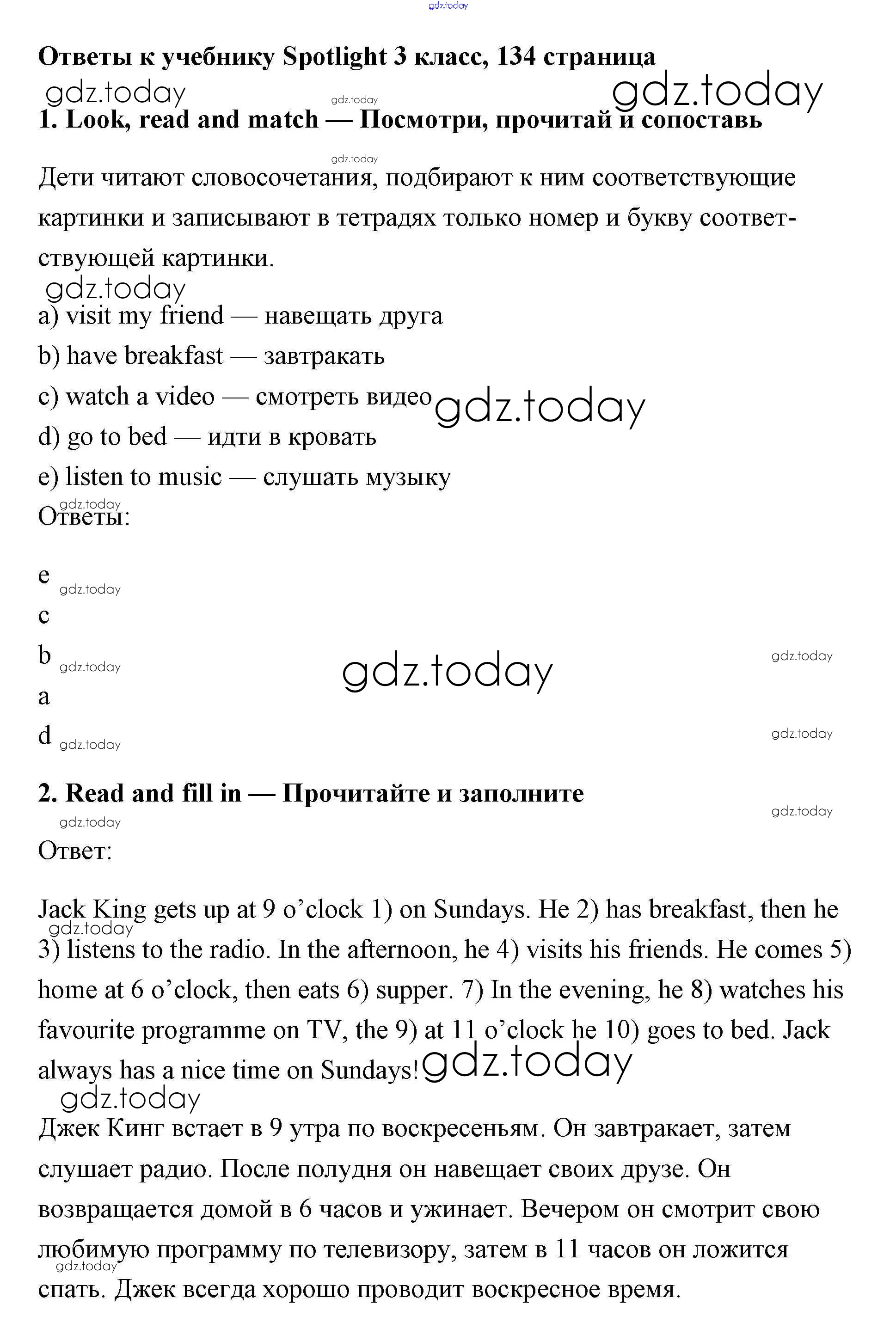 Ответы к Страницы (решение) 134 Учебнику по Английскому языку для 3 класса Быкова, Эванс Просвещение Spotlight 2015