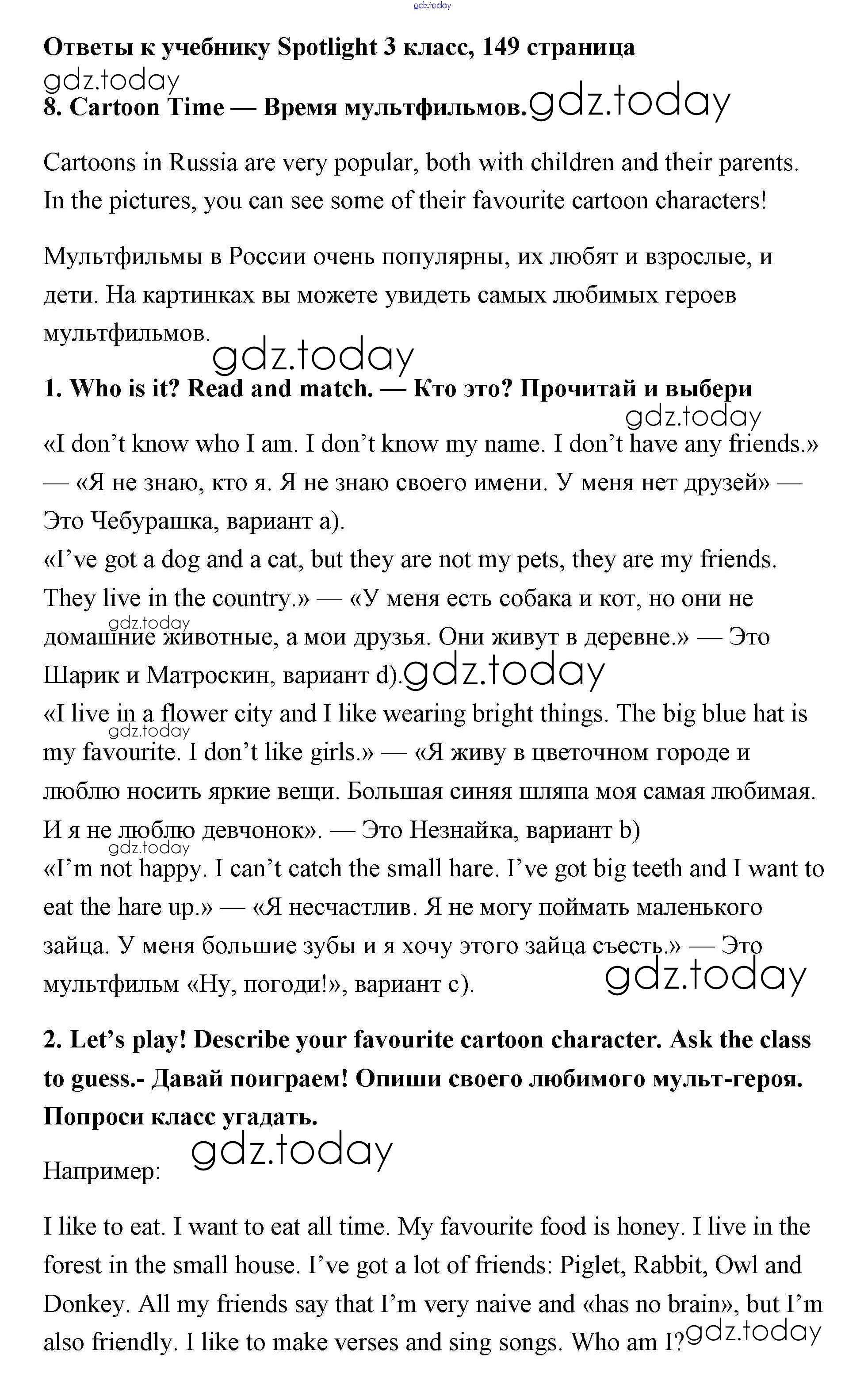 Ответы к Страницы (решение) 149 Учебнику по Английскому языку для 3 класса Быкова, Эванс Просвещение Spotlight 2015