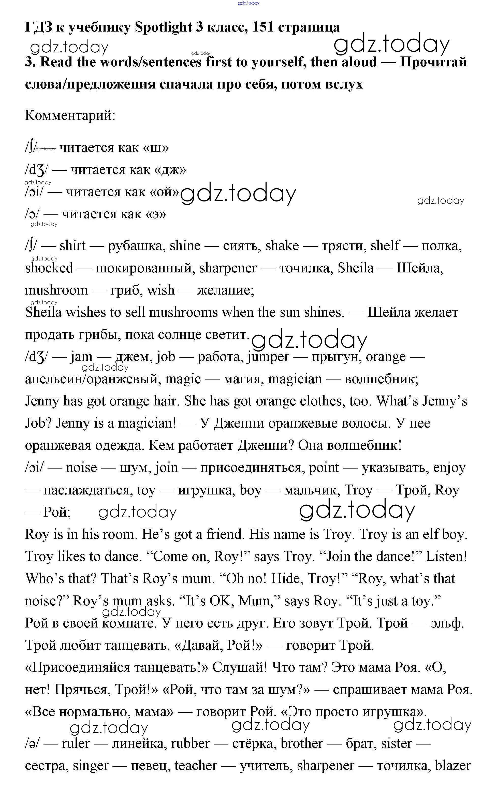 Ответы к Страницы (решение) 151 Учебнику по Английскому языку для 3 класса Быкова, Эванс Просвещение Spotlight 2015
