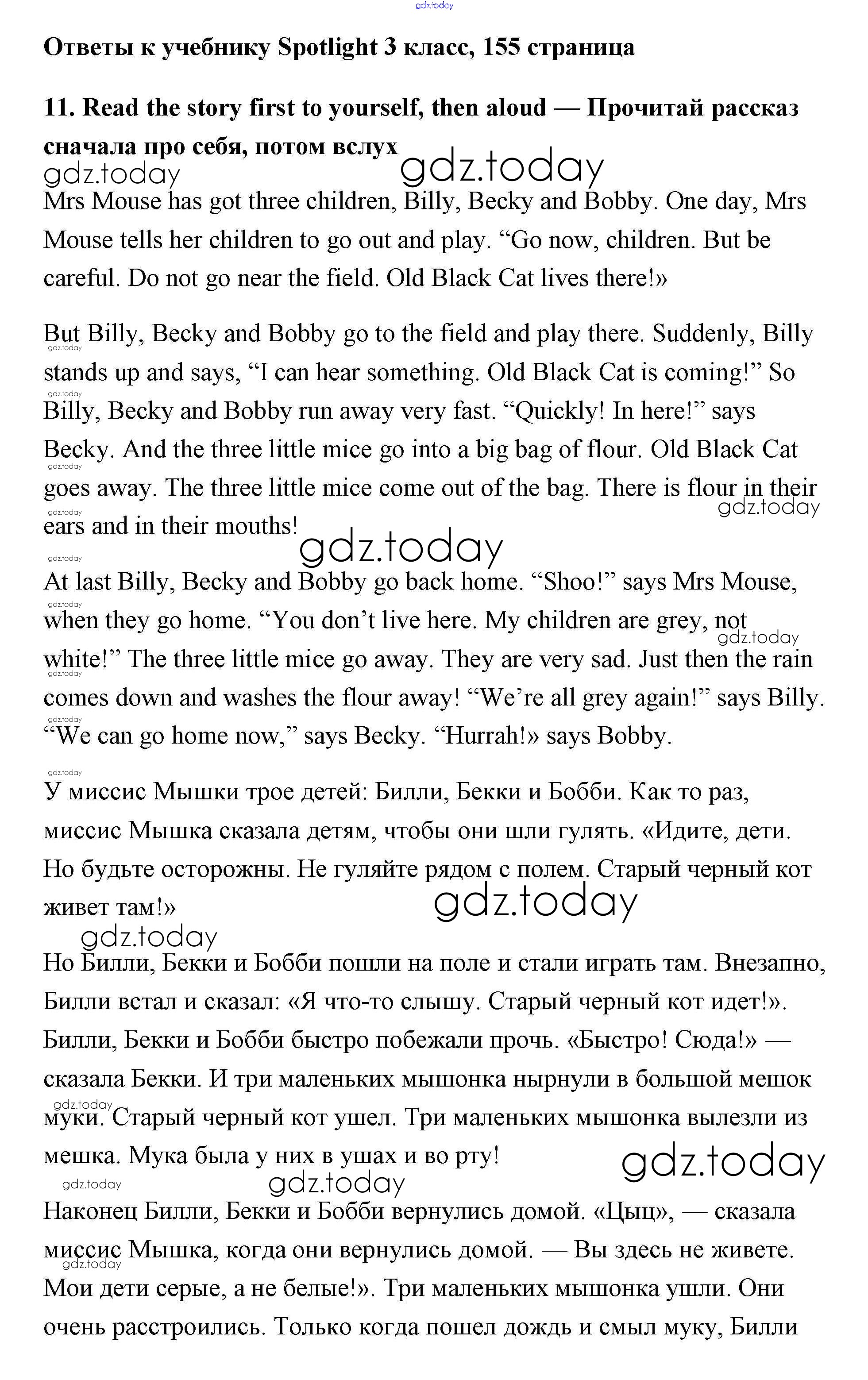 На страницах сайта gdz.today вы найдете учебный и вспомогательный материал, направленный на улучшения знаний школьной программы. ГДЗ - онлайн мир знаний Страницы (решение) 155 Учебнику по Английскому языку для 3 класса Быкова, Эванс Просвещение Spotlight 2015