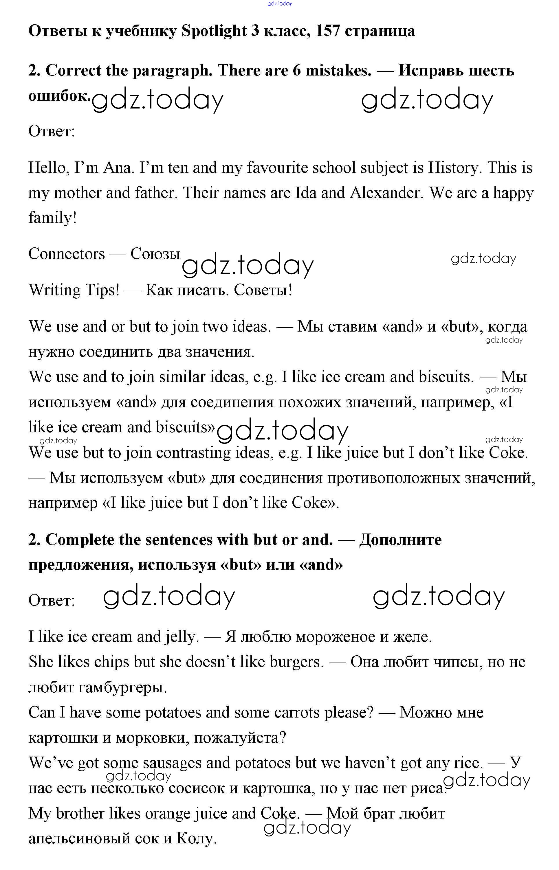 Ответы к Страницы (решение) 157 Учебнику по Английскому языку для 3 класса Быкова, Эванс Просвещение Spotlight 2015
