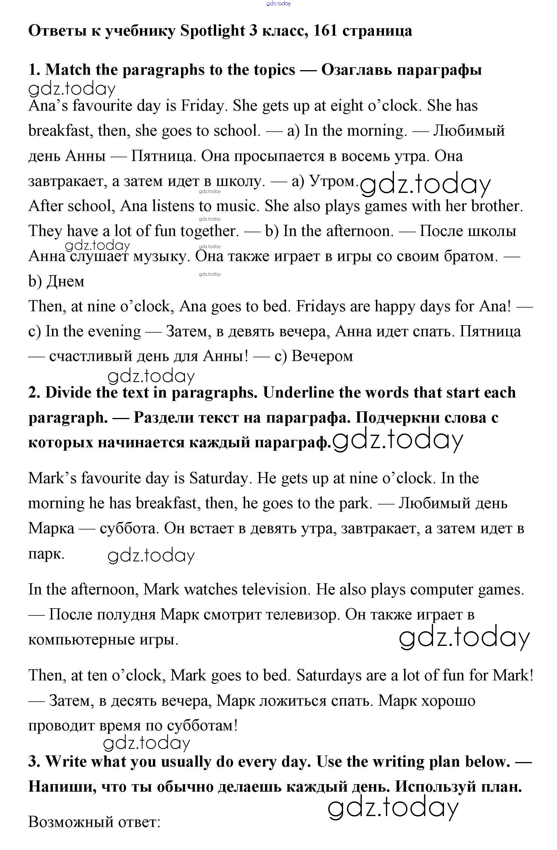 Ответы к Страницы (решение) 161 Учебнику по Английскому языку для 3 класса Быкова, Эванс Просвещение Spotlight 2015