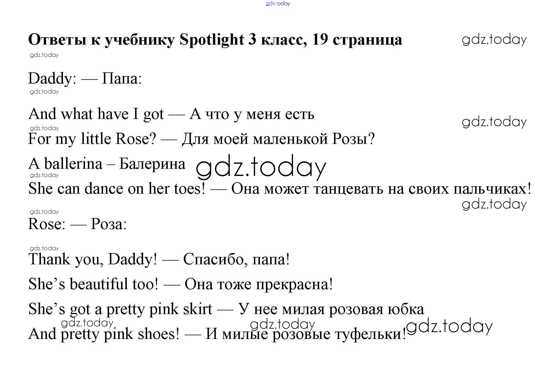 Ответы к Страницы (решение) 19 Учебнику по Английскому языку для 3 класса Быкова, Эванс Просвещение Spotlight 2015