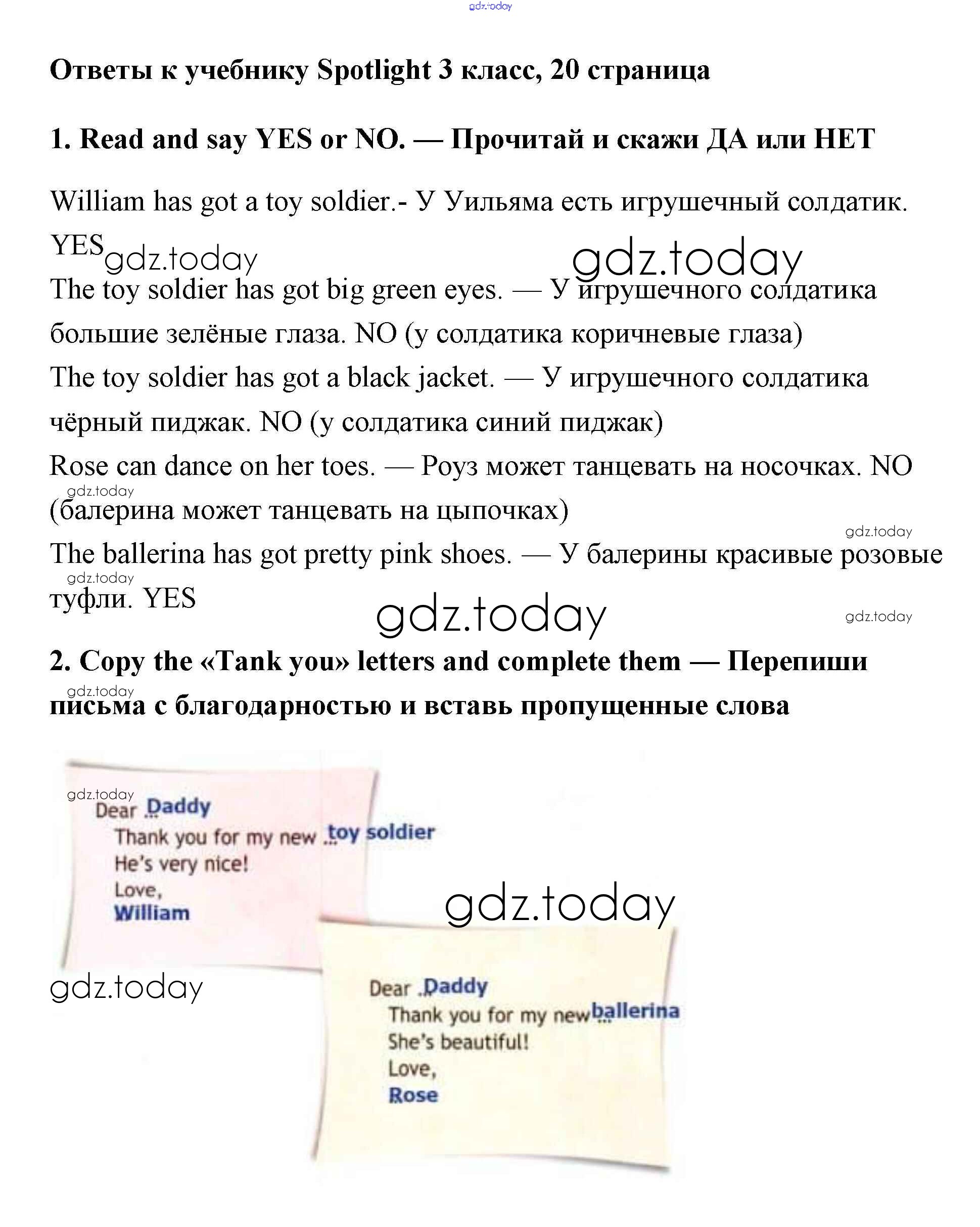 Ответы к Страницы (решение) 20 Учебнику по Английскому языку для 3 класса Быкова, Эванс Просвещение Spotlight 2015