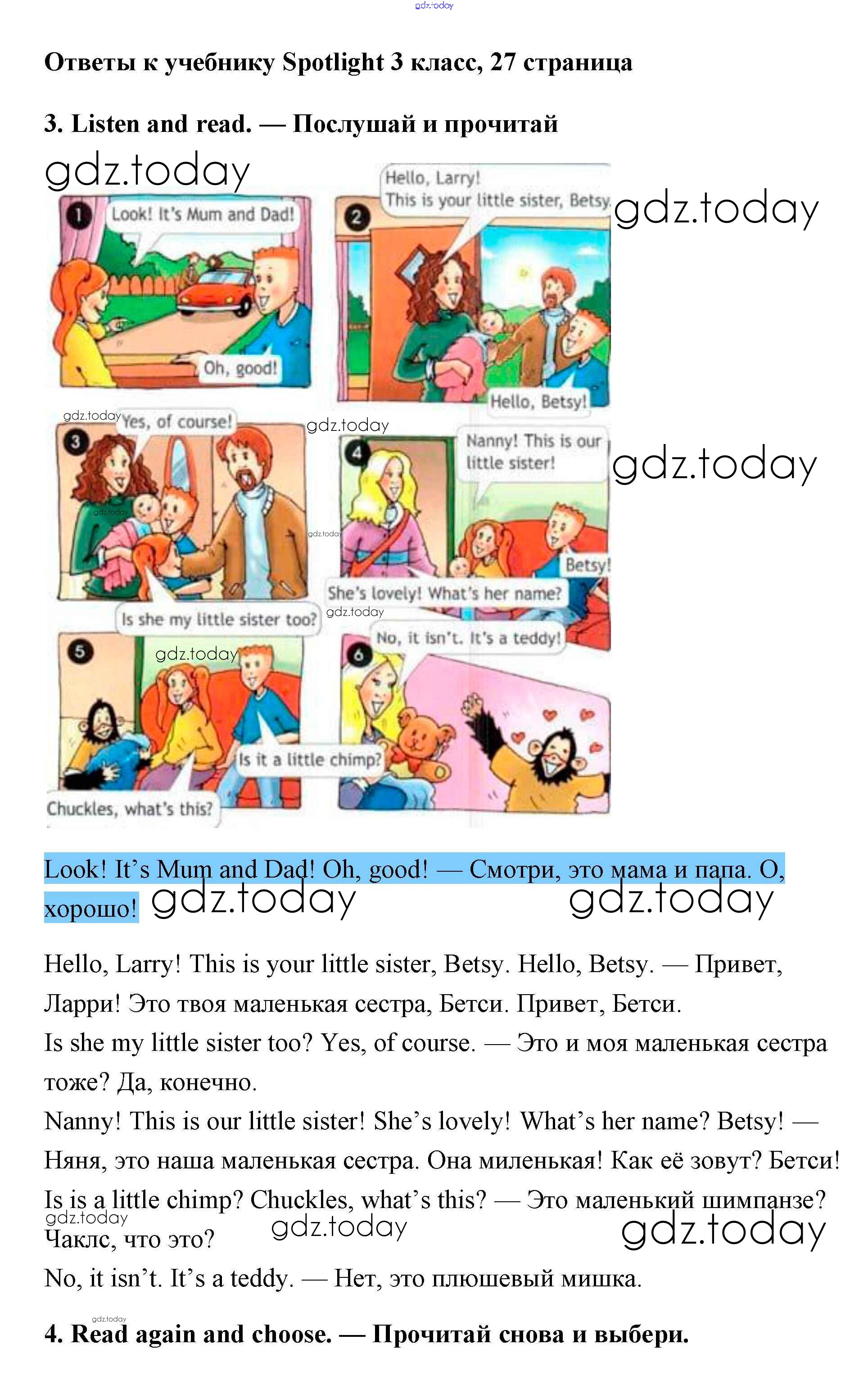 Ответы к Страницы (решение) 27 Учебнику по Английскому языку для 3 класса Быкова, Эванс Просвещение Spotlight 2015