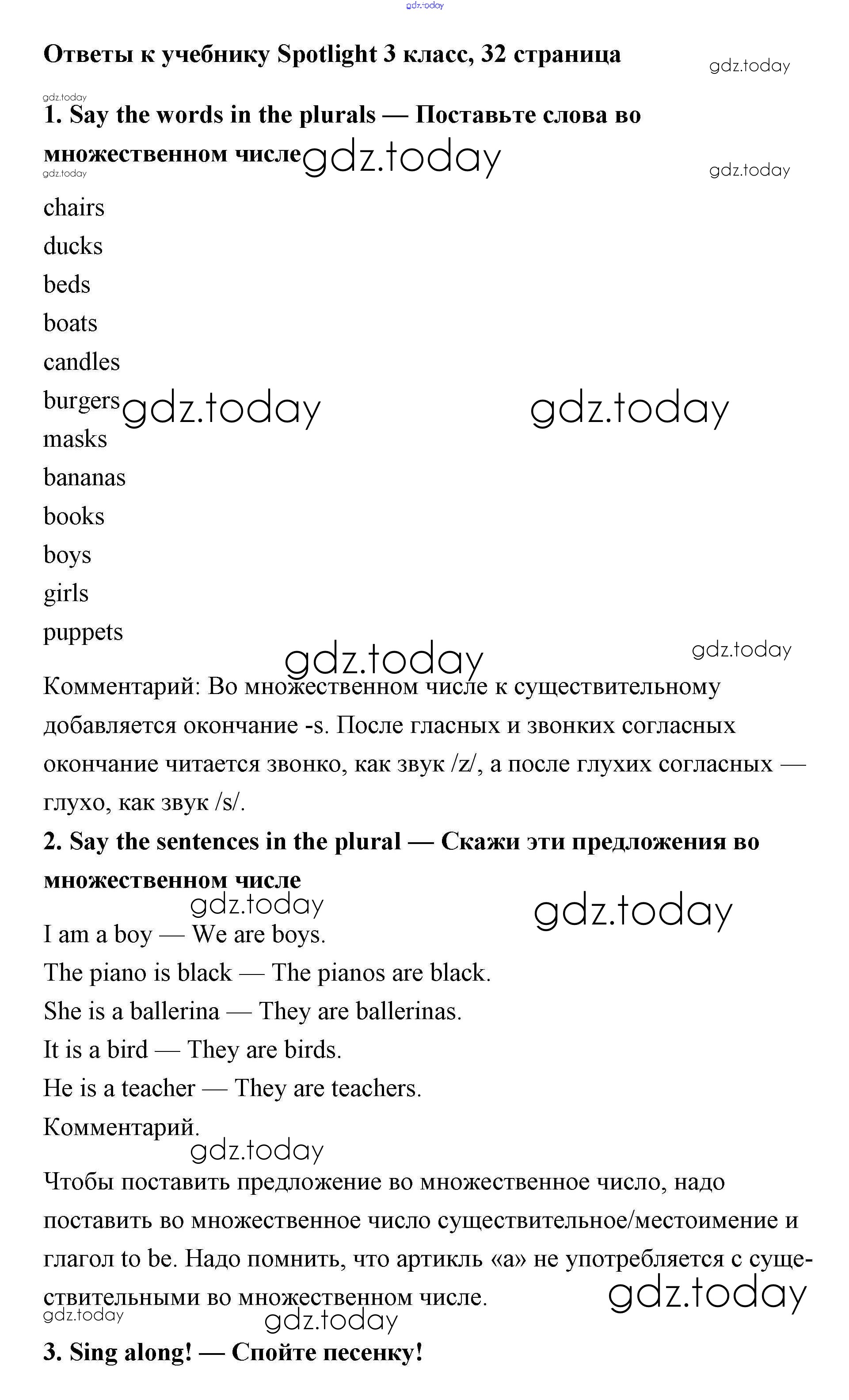 На страницах сайта gdz.today вы найдете учебный и вспомогательный материал, направленный на улучшения знаний школьной программы. ГДЗ - онлайн мир знаний Страницы (решение) 32 Учебнику по Английскому языку для 3 класса Быкова, Эванс Просвещение Spotlight 2015
