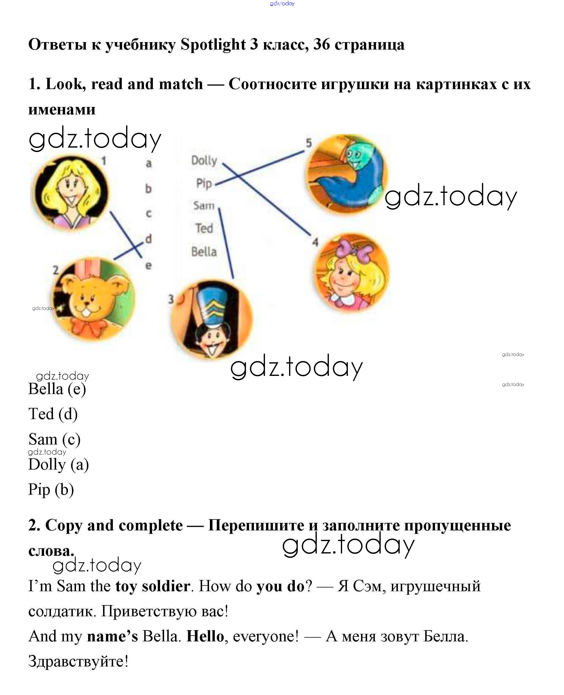 Ответы к Страницы (решение) 36 Учебнику по Английскому языку для 3 класса Быкова, Эванс Просвещение Spotlight 2015