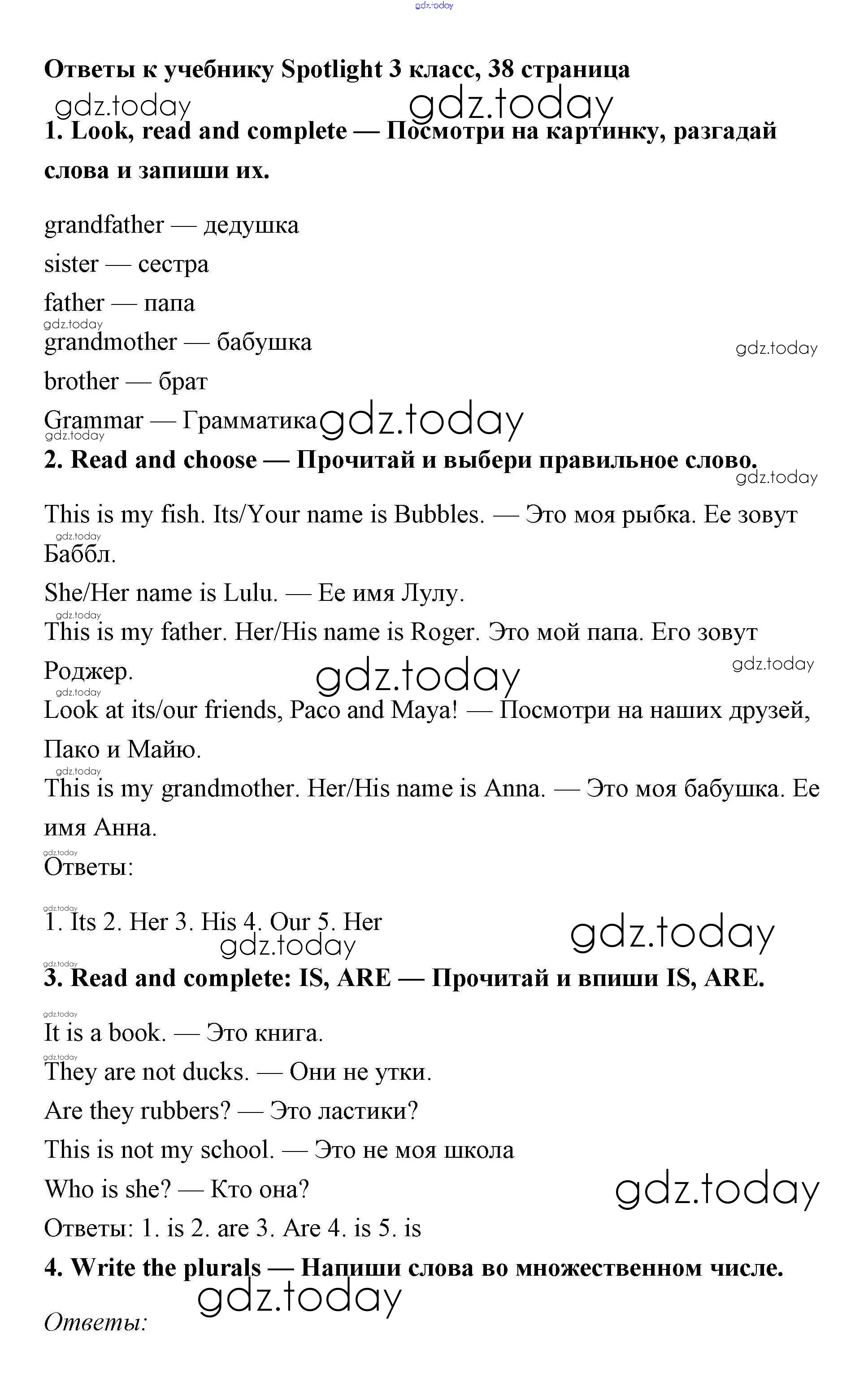 Ответы к Страницы (решение) 38 Учебнику по Английскому языку для 3 класса Быкова, Эванс Просвещение Spotlight 2015