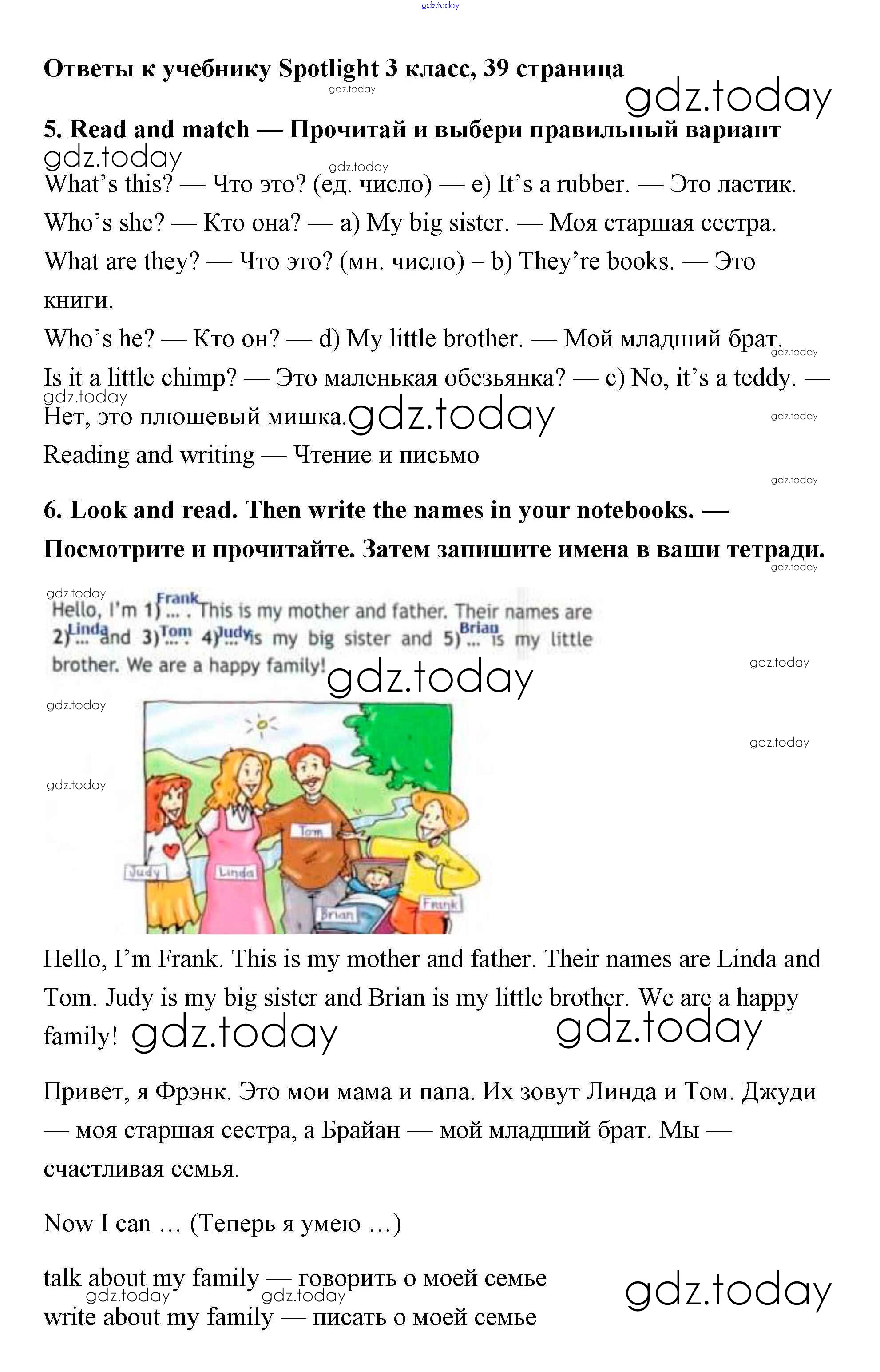 На страницах сайта gdz.today вы найдете учебный и вспомогательный материал, направленный на улучшения знаний школьной программы. ГДЗ - онлайн мир знаний Страницы (решение) 39 Учебнику по Английскому языку для 3 класса Быкова, Эванс Просвещение Spotlight 2015