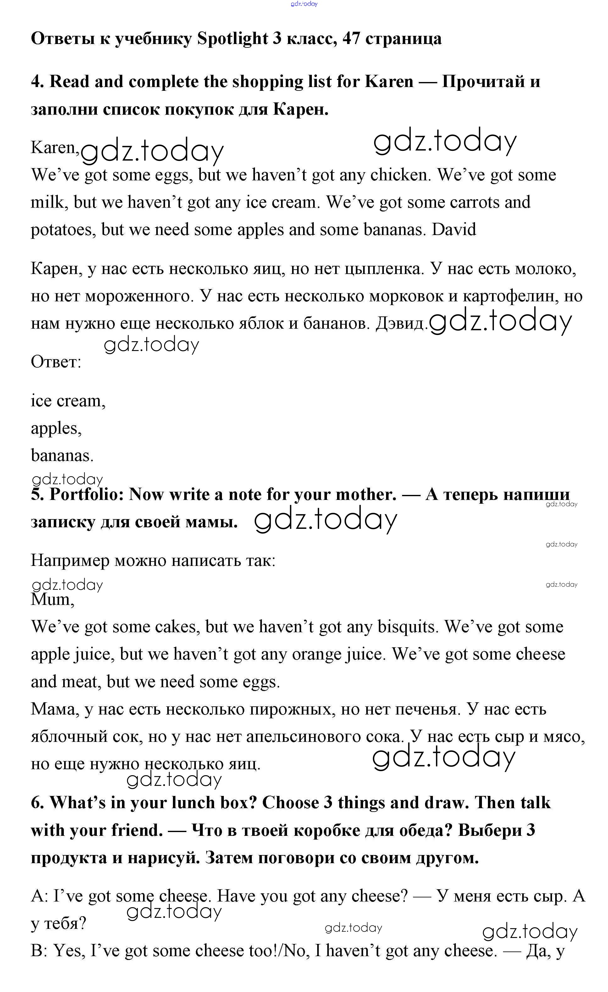 Ответы к Страницы (решение) 47 Учебнику по Английскому языку для 3 класса Быкова, Эванс Просвещение Spotlight 2015