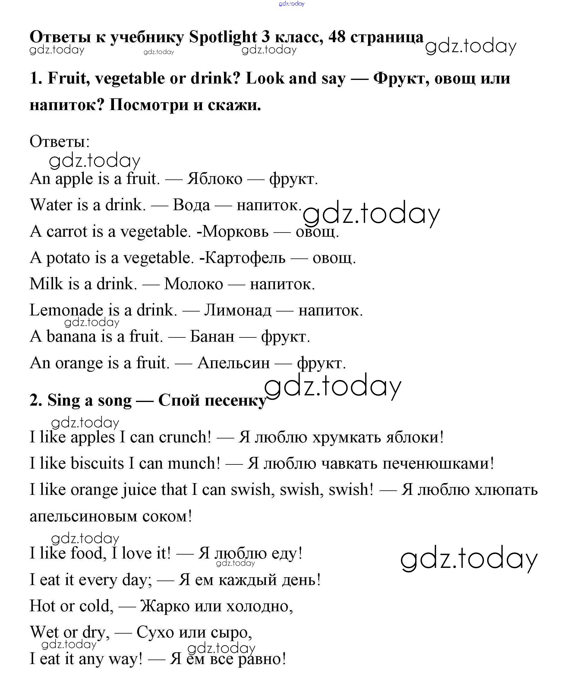 На страницах сайта gdz.today вы найдете учебный и вспомогательный материал, направленный на улучшения знаний школьной программы. ГДЗ - онлайн мир знаний Страницы (решение) 48 Учебнику по Английскому языку для 3 класса Быкова, Эванс Просвещение Spotlight 2015