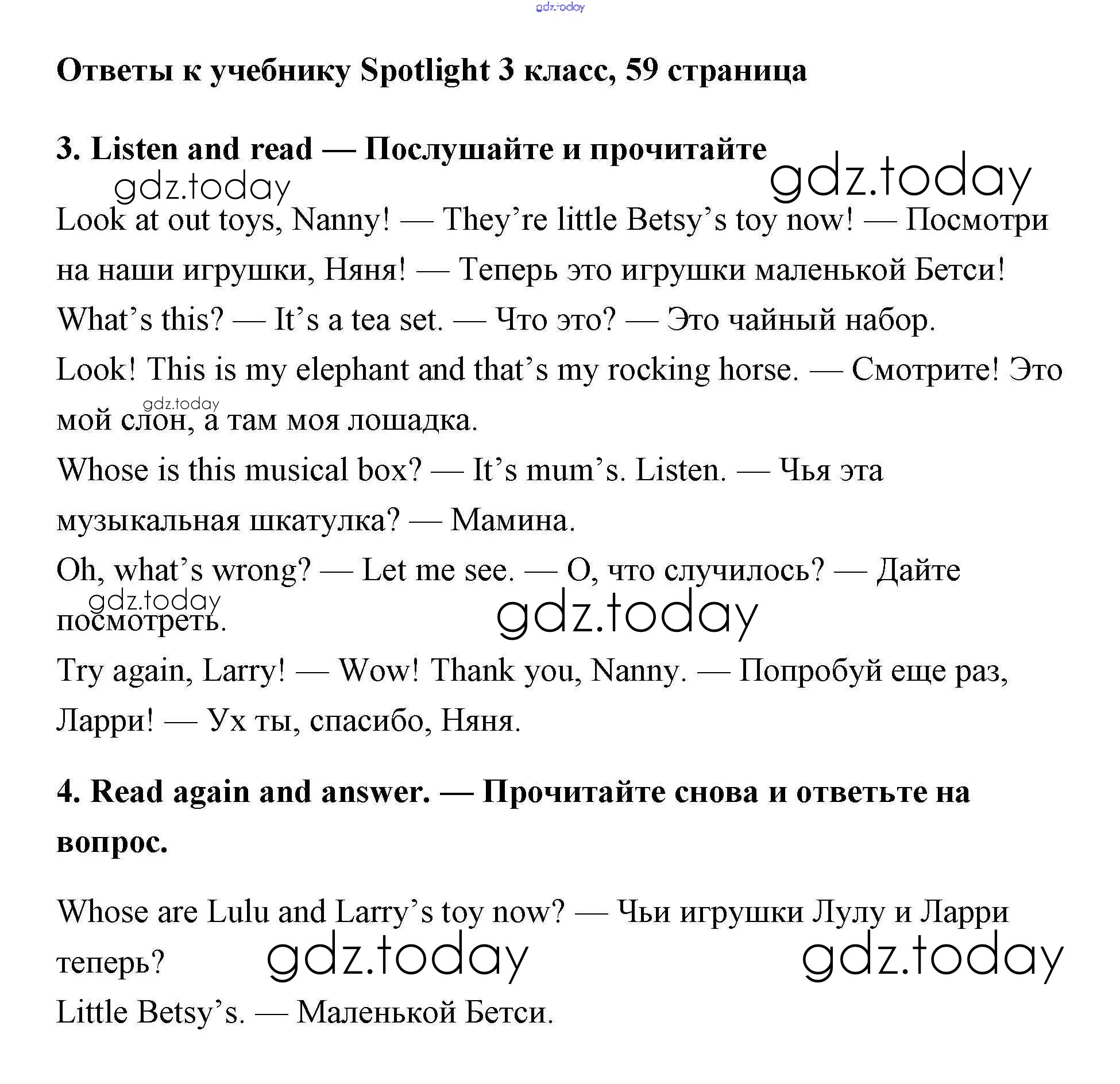 Ответы к Страницы (решение) 59 Учебнику по Английскому языку для 3 класса Быкова, Эванс Просвещение Spotlight 2015