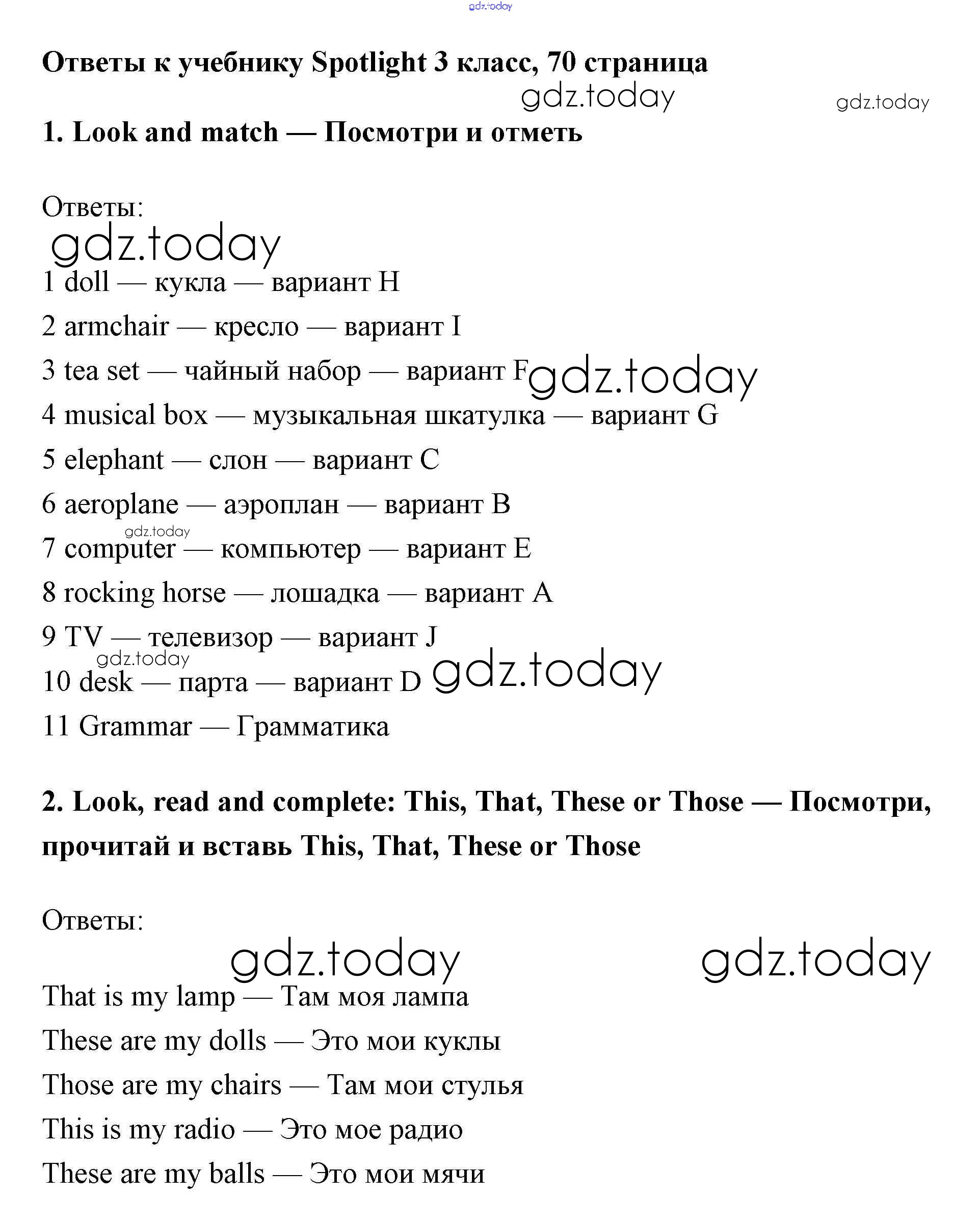 Ответы к Страницы (решение) 70 Учебнику по Английскому языку для 3 класса Быкова, Эванс Просвещение Spotlight 2015