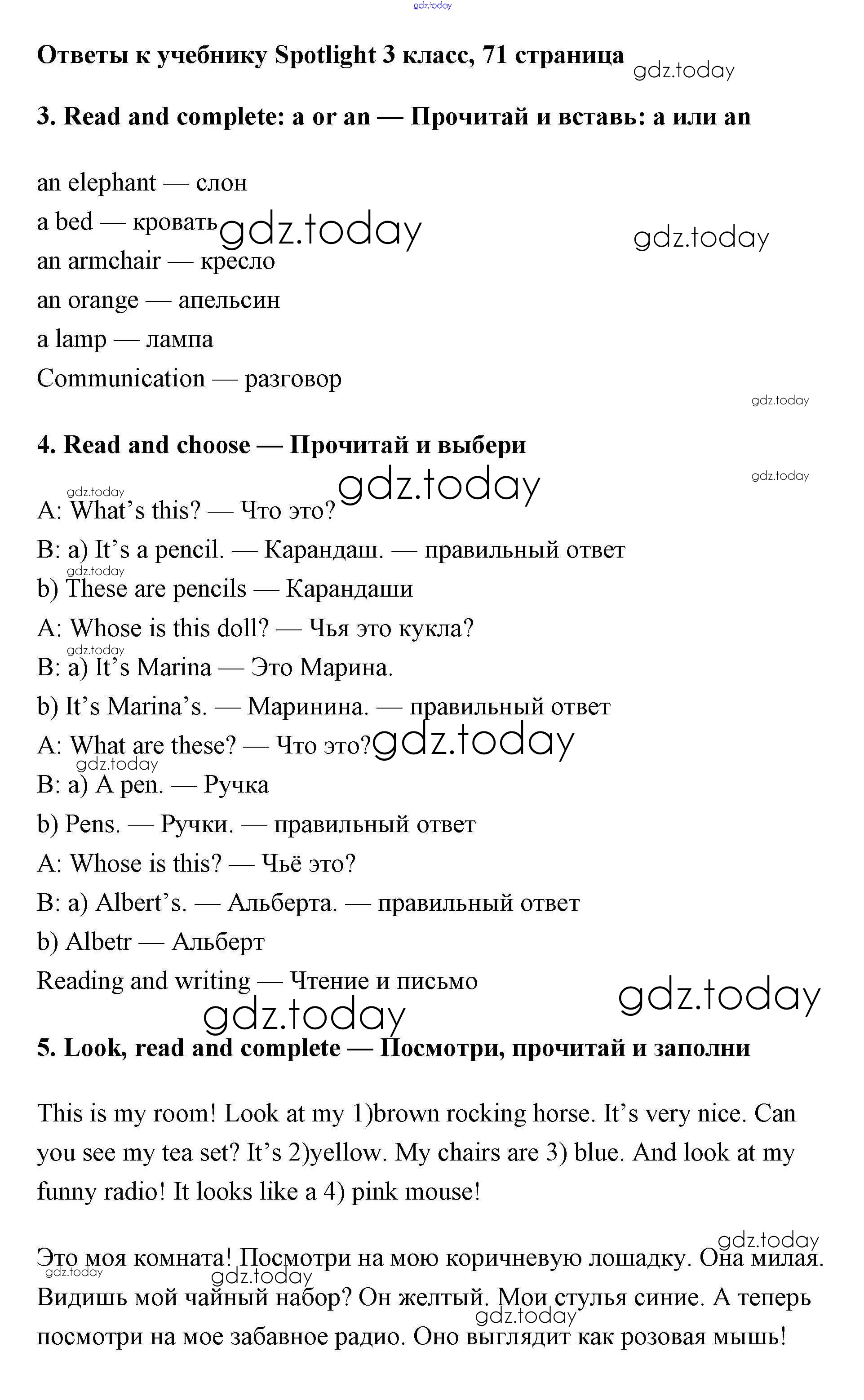 Ответы к Страницы (решение) 71 Учебнику по Английскому языку для 3 класса Быкова, Эванс Просвещение Spotlight 2015