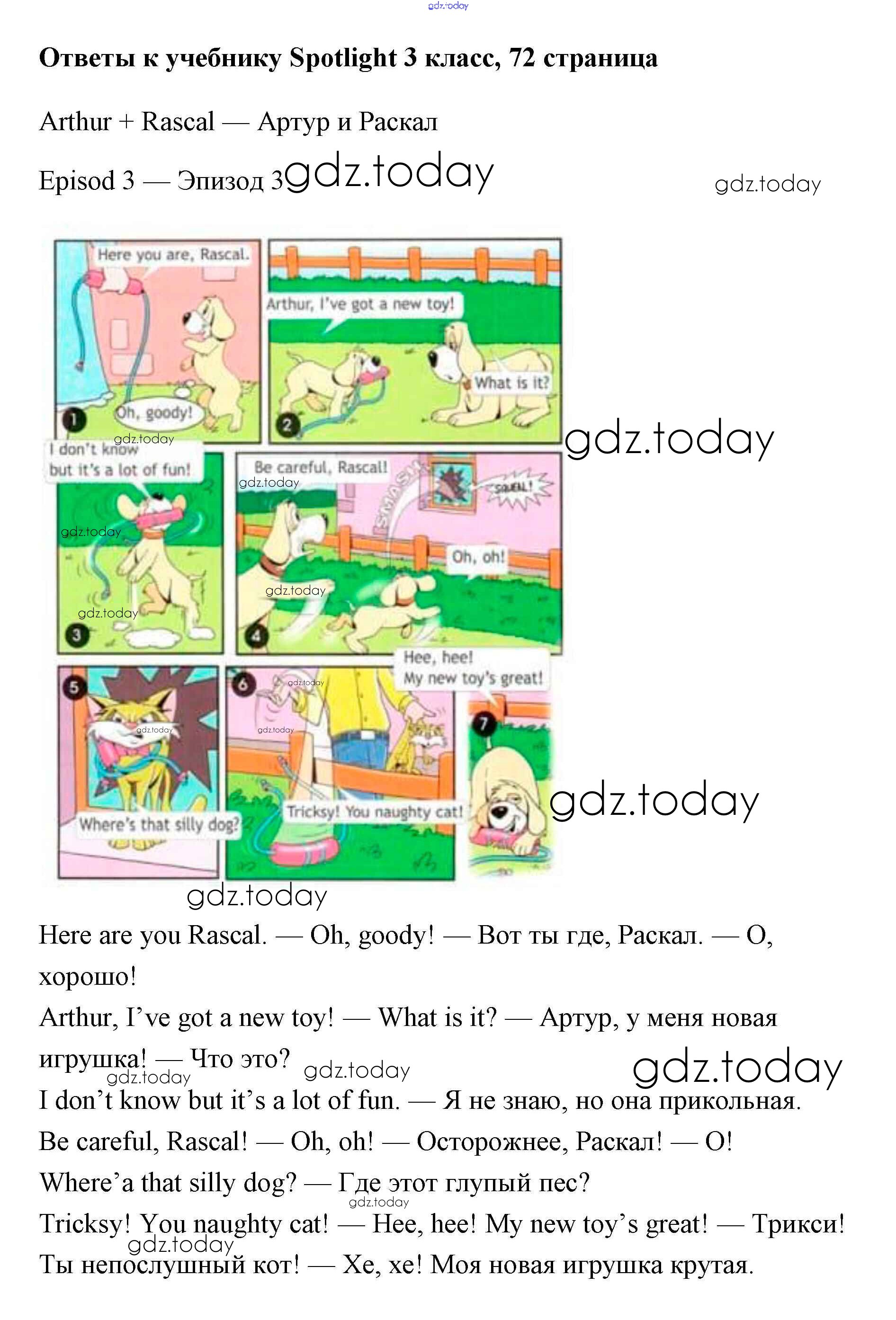 Ответы к Страницы (решение) 72 Учебнику по Английскому языку для 3 класса Быкова, Эванс Просвещение Spotlight 2015