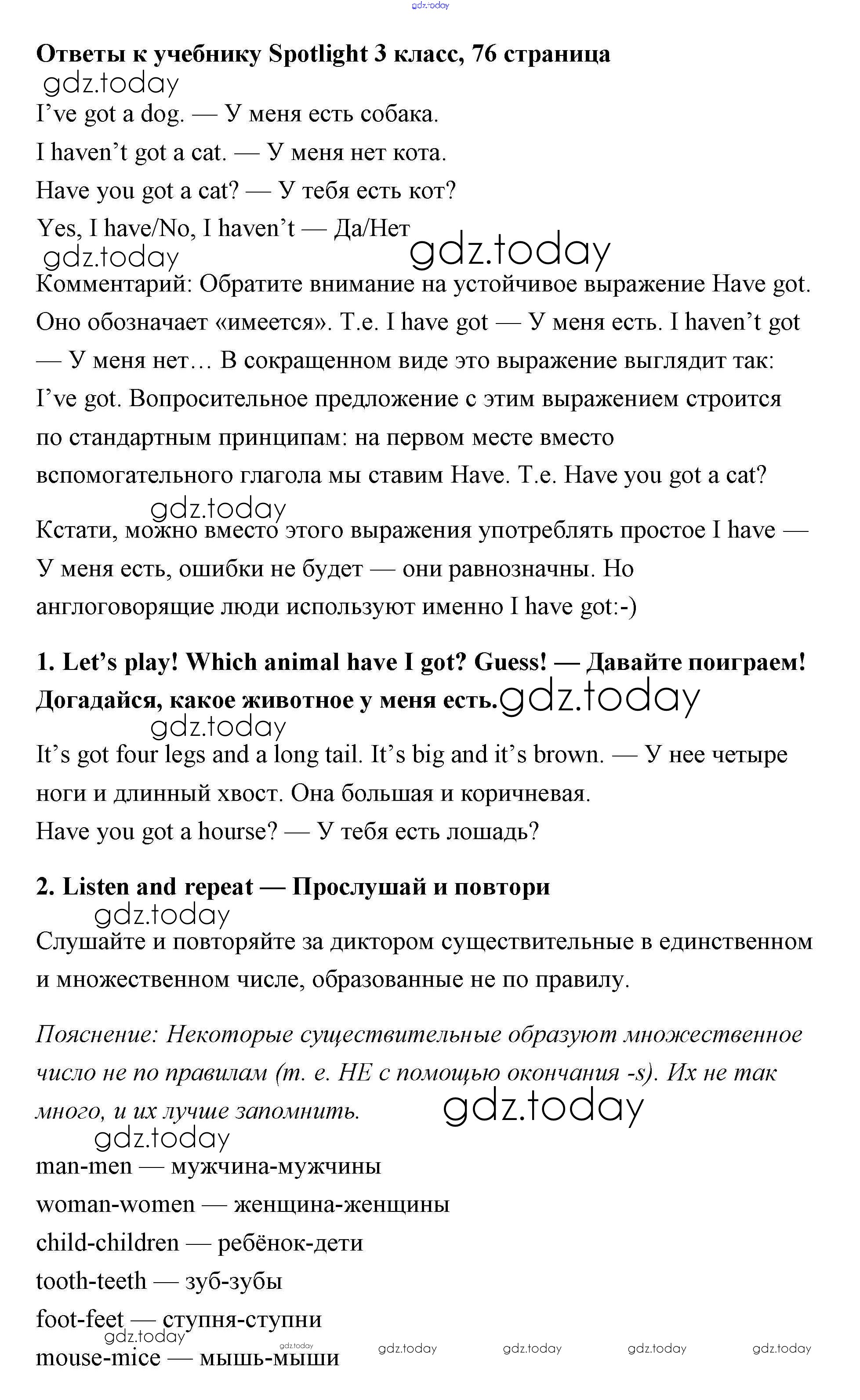 На страницах сайта gdz.today вы найдете учебный и вспомогательный материал, направленный на улучшения знаний школьной программы. ГДЗ - онлайн мир знаний Страницы (решение) 76 Учебнику по Английскому языку для 3 класса Быкова, Эванс Просвещение Spotlight 2015