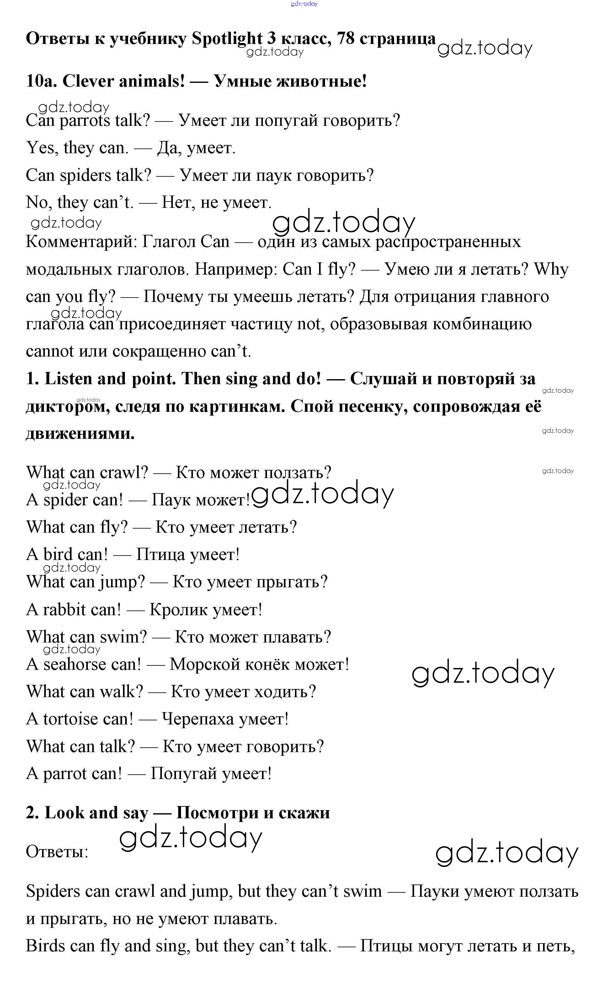 Ответы к Страницы (решение) 78 Учебнику по Английскому языку для 3 класса Быкова, Эванс Просвещение Spotlight 2015