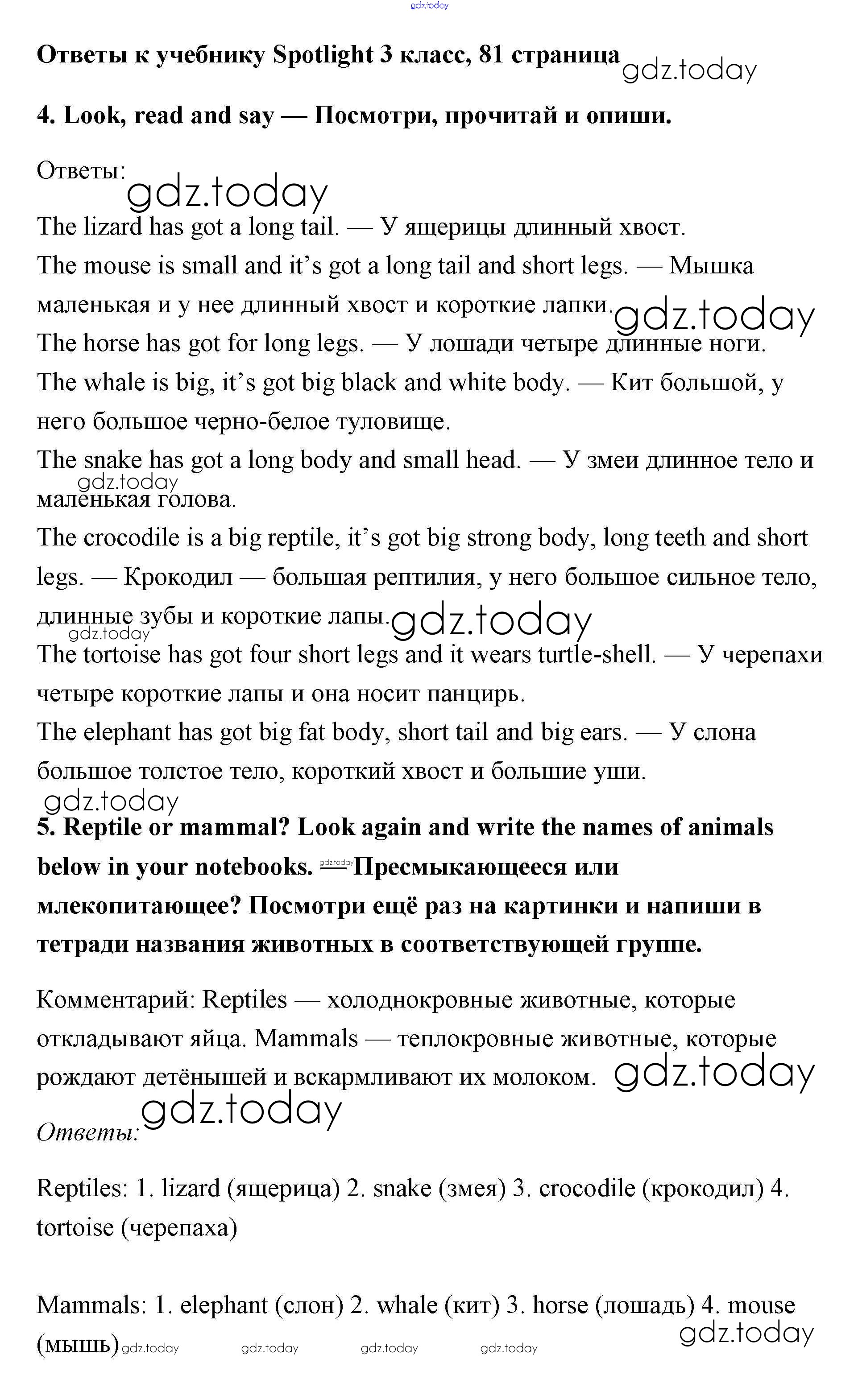 Ответы к Страницы (решение) 81 Учебнику по Английскому языку для 3 класса Быкова, Эванс Просвещение Spotlight 2015