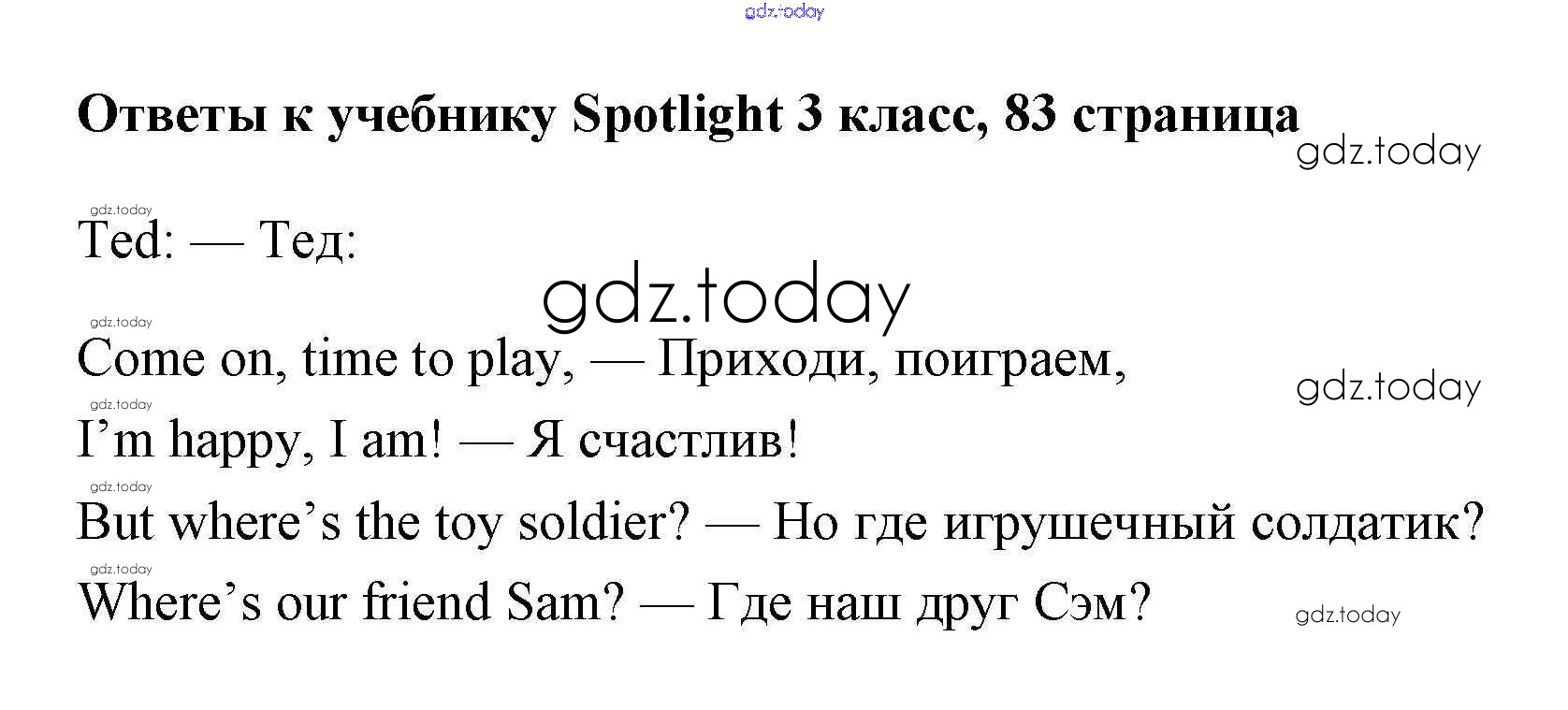 Ответы к Страницы (решение) 83 Учебнику по Английскому языку для 3 класса Быкова, Эванс Просвещение Spotlight 2015