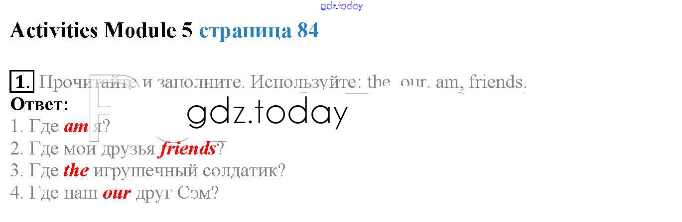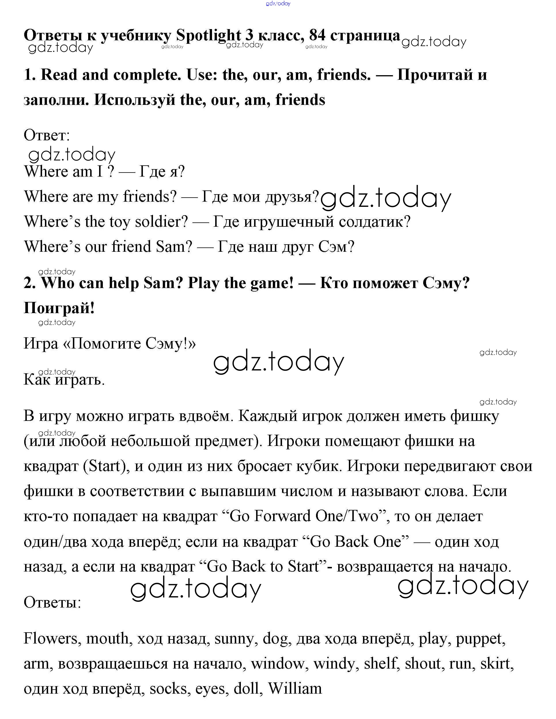 На страницах сайта gdz.today вы найдете учебный и вспомогательный материал, направленный на улучшения знаний школьной программы. ГДЗ - онлайн мир знаний Страницы (решение) 84 Учебнику по Английскому языку для 3 класса Быкова, Эванс Просвещение Spotlight 2015