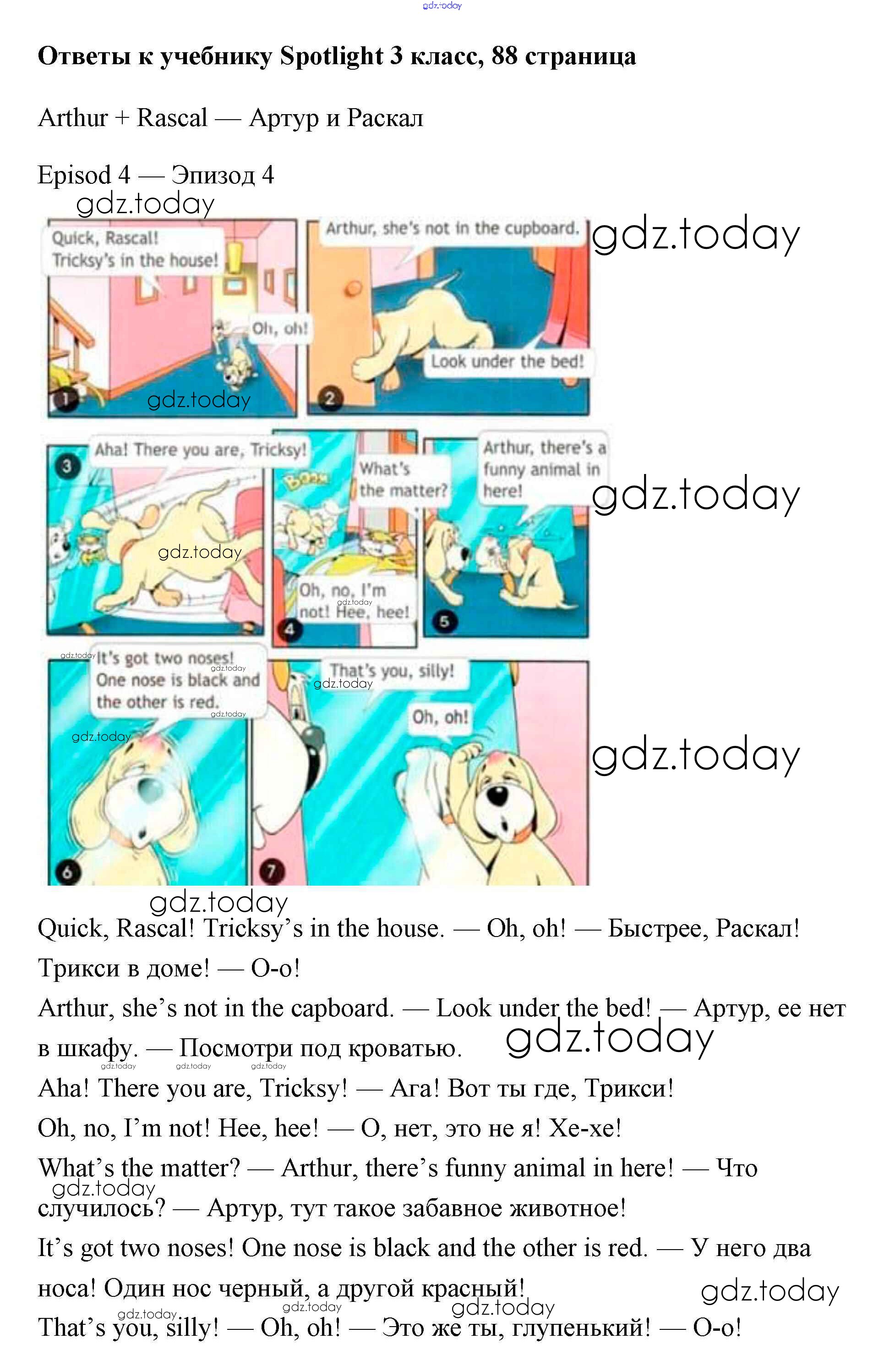 Ответы к Страницы (решение) 88 Учебнику по Английскому языку для 3 класса Быкова, Эванс Просвещение Spotlight 2015