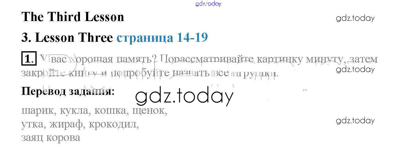 На страницах сайта gdz.today вы найдете учебный и вспомогательный материал, направленный на улучшения знаний школьной программы. ГДЗ - онлайн мир знаний Решение к части 1. Страницы учебника 14 Учебнику по Английскому языку для 3 класса Верещагина, Притыкина Углубленный уровень Просвещение 2013