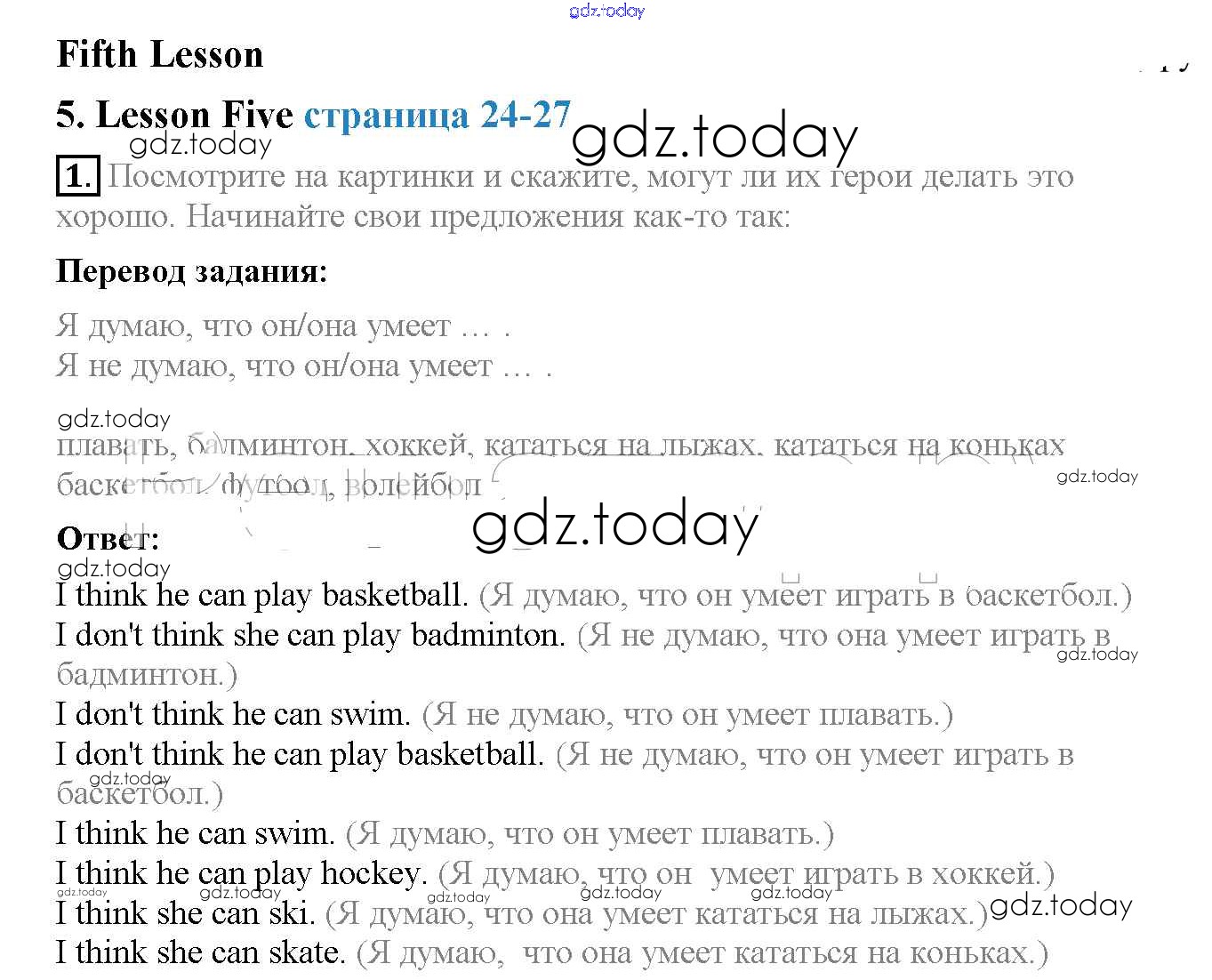 На страницах сайта gdz.today вы найдете учебный и вспомогательный материал, направленный на улучшения знаний школьной программы. ГДЗ - онлайн мир знаний Решение к части 1. Страницы учебника 24 Учебнику по Английскому языку для 3 класса Верещагина, Притыкина Углубленный уровень Просвещение 2013