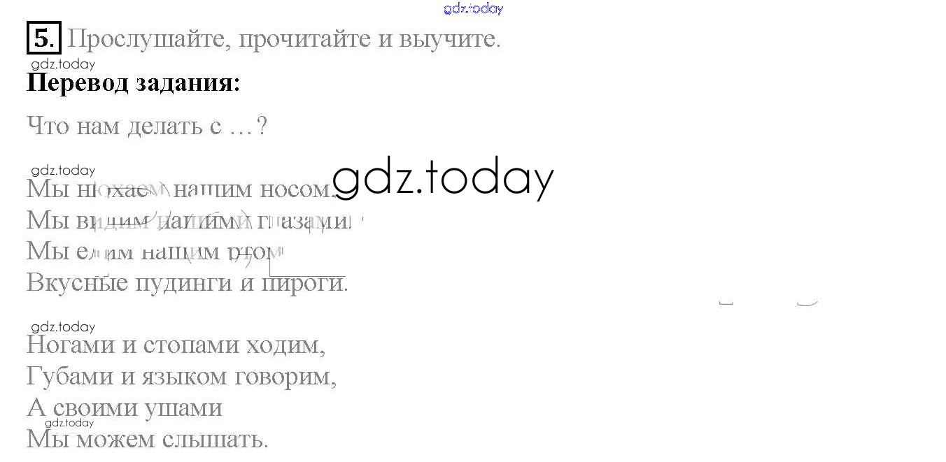 На страницах сайта gdz.today вы найдете учебный и вспомогательный материал, направленный на улучшения знаний школьной программы. ГДЗ - онлайн мир знаний Решение к части 2. Страницы учебника 5 Учебнику по Английскому языку для 3 класса Верещагина, Притыкина Углубленный уровень Просвещение 2013