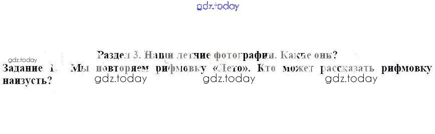 На страницах сайта gdz.today вы найдете учебный и вспомогательный материал, направленный на улучшения знаний школьной программы. ГДЗ - онлайн мир знаний Раздел 3. Наши летние фотографии. Какие они Здравствуй, третий класс! Встреча с друзьями. Маленький курс повторения 1 Учебнику по Немецкому языку для 3 класса Бим, Рыжова Просвещение 2014