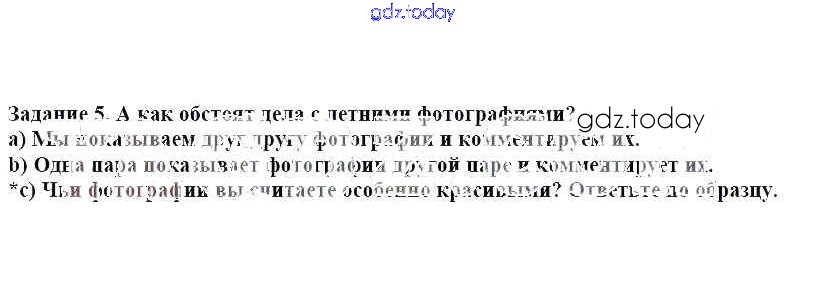 На страницах сайта gdz.today вы найдете учебный и вспомогательный материал, направленный на улучшения знаний школьной программы. ГДЗ - онлайн мир знаний Раздел 3. Наши летние фотографии. Какие они Здравствуй, третий класс! Встреча с друзьями. Маленький курс повторения 5 Учебнику по Немецкому языку для 3 класса Бим, Рыжова Просвещение 2014