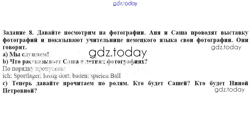 На страницах сайта gdz.today вы найдете учебный и вспомогательный материал, направленный на улучшения знаний школьной программы. ГДЗ - онлайн мир знаний Раздел 5-6. Мы играем и поём Здравствуй, третий класс! Встреча с друзьями. Маленький курс повторения 8 Учебнику по Немецкому языку для 3 класса Бим, Рыжова Просвещение 2014