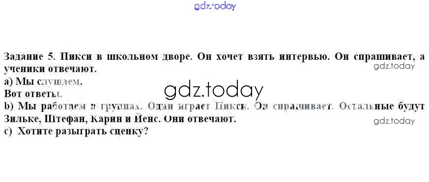 На страницах сайта gdz.today вы найдете учебный и вспомогательный материал, направленный на улучшения знаний школьной программы. ГДЗ - онлайн мир знаний Раздел 1. Наши друзья снова идут в школу Решение к главе 1. Сабина любит ходить в школу. А вы? 5 Учебнику по Немецкому языку для 3 класса Бим, Рыжова Просвещение 2014