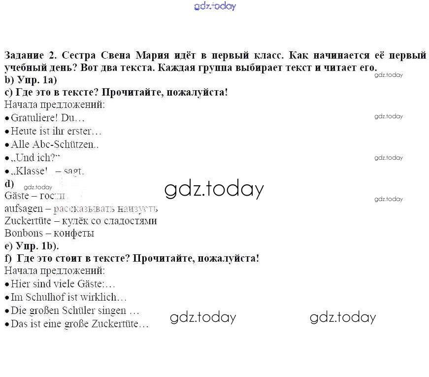 На страницах сайта gdz.today вы найдете учебный и вспомогательный материал, направленный на улучшения знаний школьной программы. ГДЗ - онлайн мир знаний Раздел 3. Первый учебный день Марии Решение к главе 1. Сабина любит ходить в школу. А вы? 2 Учебнику по Немецкому языку для 3 класса Бим, Рыжова Просвещение 2014