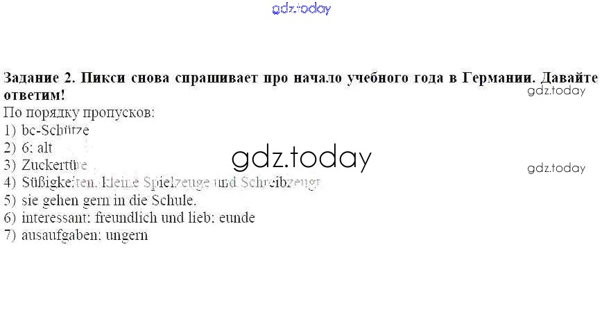 На страницах сайта gdz.today вы найдете учебный и вспомогательный материал, направленный на улучшения знаний школьной программы. ГДЗ - онлайн мир знаний Раздел 4. Какой сегодня день недели Решение к главе 1. Сабина любит ходить в школу. А вы? 2 Учебнику по Немецкому языку для 3 класса Бим, Рыжова Просвещение 2014