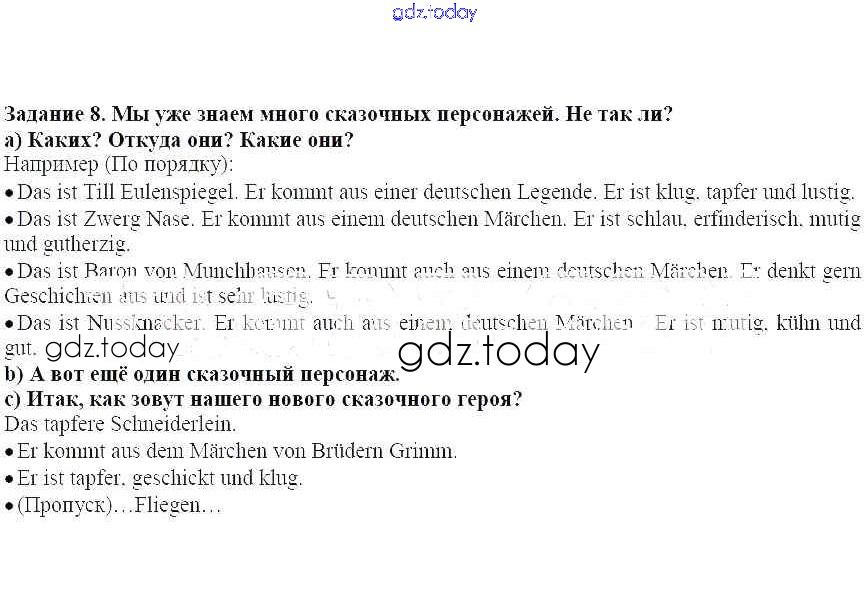 На страницах сайта gdz.today вы найдете учебный и вспомогательный материал, направленный на улучшения знаний школьной программы. ГДЗ - онлайн мир знаний Раздел 4. Какой сегодня день недели Решение к главе 1. Сабина любит ходить в школу. А вы? 8 Учебнику по Немецкому языку для 3 класса Бим, Рыжова Просвещение 2014