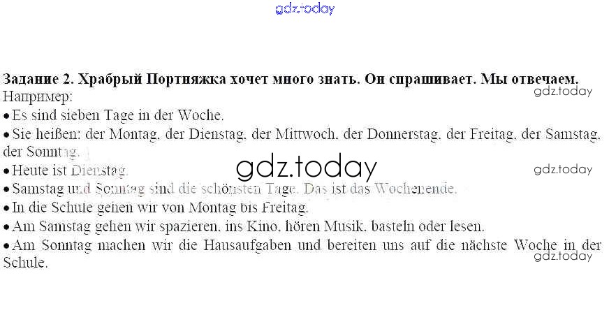 На страницах сайта gdz.today вы найдете учебный и вспомогательный материал, направленный на улучшения знаний школьной программы. ГДЗ - онлайн мир знаний Раздел 5. Что мы делаем в субботу и воскресенье Решение к главе 1. Сабина любит ходить в школу. А вы? 2 Учебнику по Немецкому языку для 3 класса Бим, Рыжова Просвещение 2014