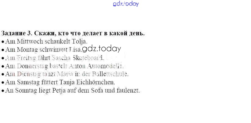 На страницах сайта gdz.today вы найдете учебный и вспомогательный материал, направленный на улучшения знаний школьной программы. ГДЗ - онлайн мир знаний Раздел 5. Что мы делаем в субботу и воскресенье Решение к главе 1. Сабина любит ходить в школу. А вы? 3 Учебнику по Немецкому языку для 3 класса Бим, Рыжова Просвещение 2014