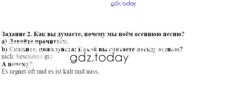 На страницах сайта gdz.today вы найдете учебный и вспомогательный материал, направленный на улучшения знаний школьной программы. ГДЗ - онлайн мир знаний Раздел 2. А что сейчас делают Сабина и Свен Решение к главе 2. Осень. Какая сейчас погода 2 Учебнику по Немецкому языку для 3 класса Бим, Рыжова Просвещение 2014