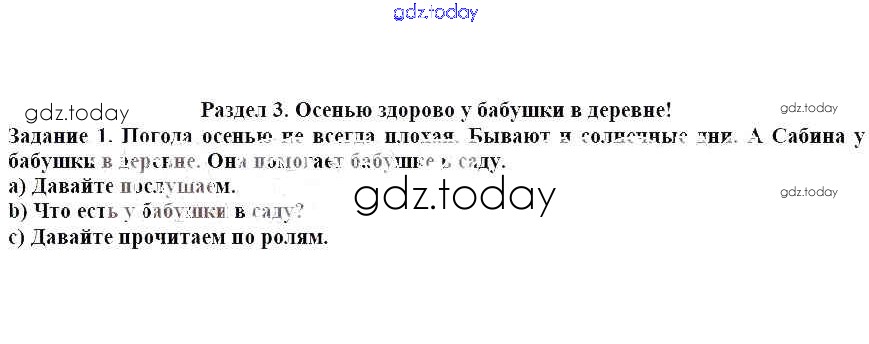 На страницах сайта gdz.today вы найдете учебный и вспомогательный материал, направленный на улучшения знаний школьной программы. ГДЗ - онлайн мир знаний Раздел 3. Осенью здорово у бабушки в деревне! Решение к главе 2. Осень. Какая сейчас погода 1 Учебнику по Немецкому языку для 3 класса Бим, Рыжова Просвещение 2014