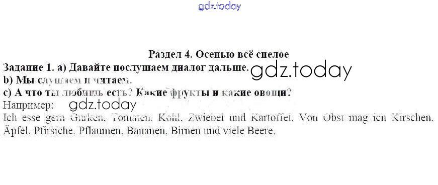 На страницах сайта gdz.today вы найдете учебный и вспомогательный материал, направленный на улучшения знаний школьной программы. ГДЗ - онлайн мир знаний Раздел 4. Осенью всё спелое Решение к главе 2. Осень. Какая сейчас погода 1 Учебнику по Немецкому языку для 3 класса Бим, Рыжова Просвещение 2014