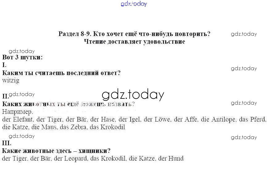 На страницах сайта gdz.today вы найдете учебный и вспомогательный материал, направленный на улучшения знаний школьной программы. ГДЗ - онлайн мир знаний Раздел 8-9. Кто хочет ещё что-нибудь повторить Решение к главе 2. Осень. Какая сейчас погода 1 Учебнику по Немецкому языку для 3 класса Бим, Рыжова Просвещение 2014