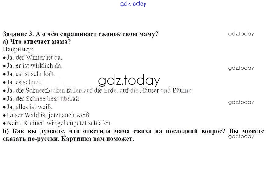 Ответы к Раздел 2. Кто умеет отгадывать загадки о животных Решение к главе 3. А что приносит нам зима 3 Учебнику по Немецкому языку для 3 класса Бим, Рыжова Просвещение 2014