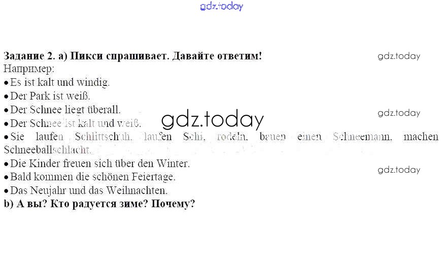 На страницах сайта gdz.today вы найдете учебный и вспомогательный материал, направленный на улучшения знаний школьной программы. ГДЗ - онлайн мир знаний Раздел 4. Почему дети радуются зиме Решение к главе 3. А что приносит нам зима 2 Учебнику по Немецкому языку для 3 класса Бим, Рыжова Просвещение 2014