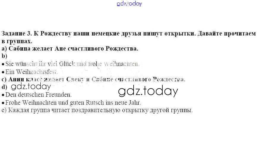 На страницах сайта gdz.today вы найдете учебный и вспомогательный материал, направленный на улучшения знаний школьной программы. ГДЗ - онлайн мир знаний Раздел 6. Мы играем и поём и готовимся к новогоднему празднику Решение к главе 3. А что приносит нам зима 3 Учебнику по Немецкому языку для 3 класса Бим, Рыжова Просвещение 2014