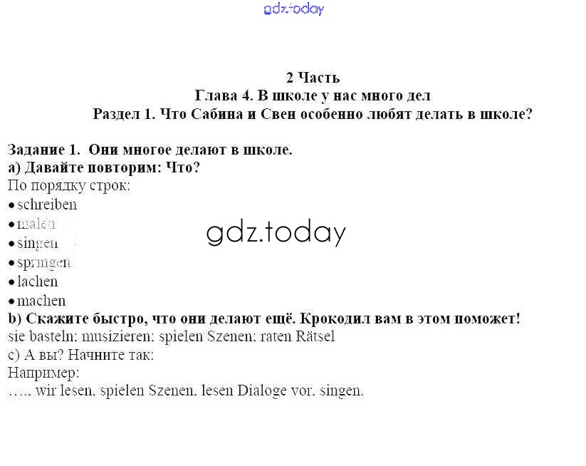 На страницах сайта gdz.today вы найдете учебный и вспомогательный материал, направленный на улучшения знаний школьной программы. ГДЗ - онлайн мир знаний Раздел 1. Что Сабина и Свен особенно любят делать в школе Решение к главе 4. В школе у нас много дел 1 Учебнику по Немецкому языку для 3 класса Бим, Рыжова Просвещение 2014