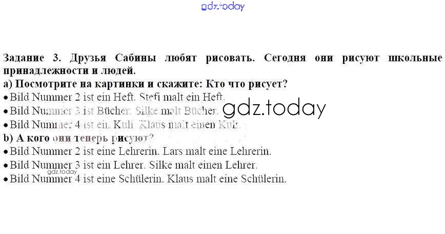 На страницах сайта gdz.today вы найдете учебный и вспомогательный материал, направленный на улучшения знаний школьной программы. ГДЗ - онлайн мир знаний Раздел 1. Что Сабина и Свен особенно любят делать в школе Решение к главе 4. В школе у нас много дел 3 Учебнику по Немецкому языку для 3 класса Бим, Рыжова Просвещение 2014